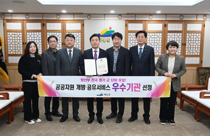 예산군, 군 단위 유일 ‘공공자원 개방·공유서비스 실적평가’ 우수 지자체 선정