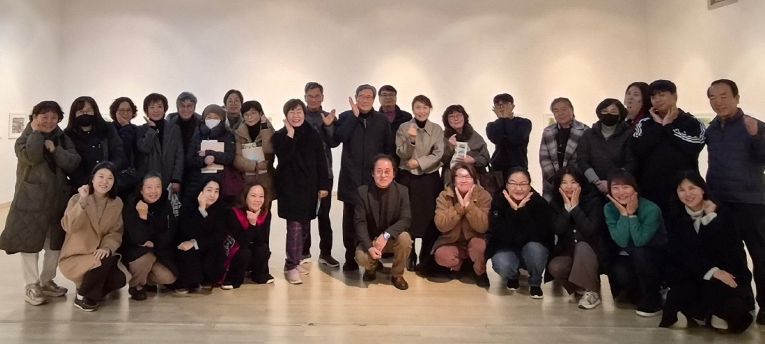| ▲ 강진아트홀에서 열린 강진군 도서관 수채화 아카데미 개막식 참석자들이 한 자리에 모였다. |