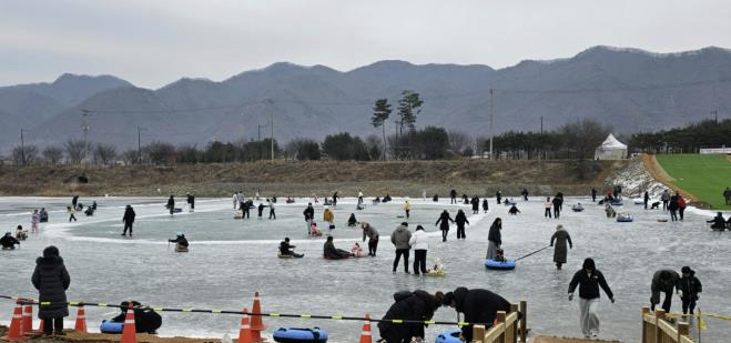 | ▲ 차탄천에서 즐기는 겨울 썰매… 연천군 연천읍 썰매장 운영 |