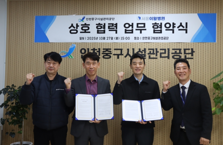 [무한뉴스=정승훈 기자] 인천중구시설관리공단은 지난 10월 27일 임직원의 건강 복지 증진과 지역사회 건강 인프라 강화를 위해 서울이왕병원(대표원장 이승원·왕배건)과 업무협약(MOU)을 체결했다고 밝혔다.
