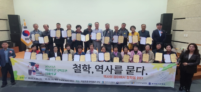[무한뉴스=최진수 기자] 의성군은 10월 22일 문화체육관광부와 한국문화예술위원회가 주관하는 2025년 ‘지혜학교’ 프로그램의 마지막 강연 및 수료식을 의성조문국박물관 강당에서 성공적으로 마쳤다고 밝혔다.