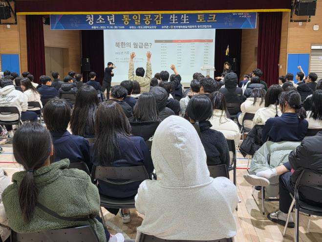 [무한뉴스=최진수 기자] 청도군은 지난 18일 청도고등학교 강당에서 민주평화통일자문회의 청도군협의회 주관으로 '2025 청소년 통일공감 生生(생생) 토크'를 개최했다고 밝혔다.