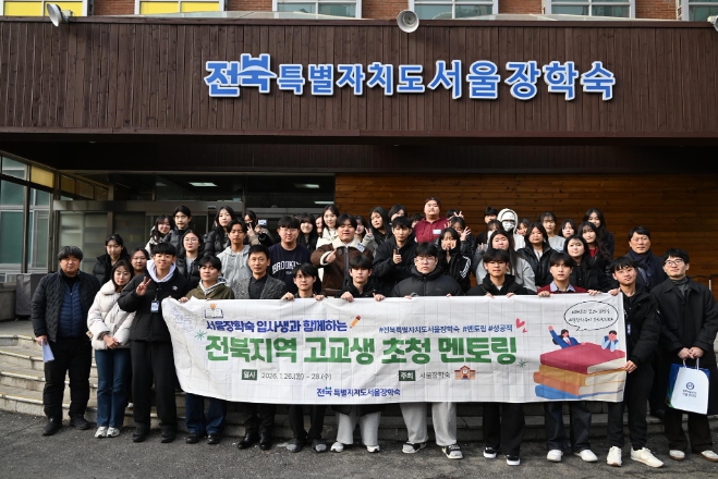 [무한뉴스=정민정 기자] 전북특별자치도서울장학숙(관장 강길동)은 2026년 1월 26일부터 1월 28일까지 3일간 도내 14개 시․군 고교생 21명(1학년 남 8명, 여 13명)을 서울장학숙으로 초청, 입사생과 함께 숙박하며 '선후배와의 만남' 멘토링 행사를 진행한다.