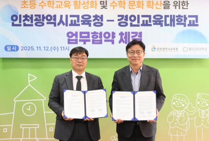 [무한뉴스=정승훈 기자] 인천광역시교육청은 12일 초등 수학교육 활성화와 수학 문화 확산을 위해 경인교육대학교와 업무협약을 체결했다고 밝혔다.