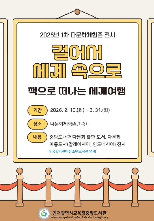 [무한뉴스=정승훈 기자] 인천광역시교육청중앙도서관은 2월 10일부터 3월 31일까지 1층 다문화체험존에서 ‘책으로 떠나는 세계여행’ 전시를 개최한다.