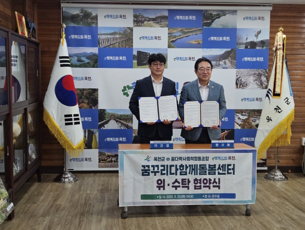 [무한뉴스=정민정 기자] 옥천군이 23일 꿈다락사회적협동조합(대표 이요셉)과 옥천군 다함께돌봄센터 3호점 ‘꿈꾸리다함께돌봄센터’에 대해 위⋅수탁 협약을 체결했다.