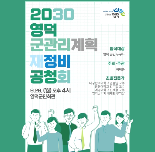 [무한뉴스=최진수 기자] 영덕군은 도시의 지속 가능한 발전과 합리적인 토지이용을 위해 ‘2030 영덕 군관리계획 재정비(안)’ 공청회를 오는 29일 오후 4시 영덕군민회관에서 진행한다.