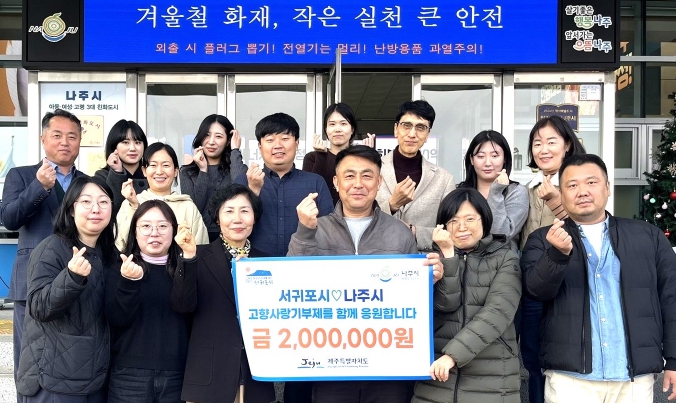 [무한뉴스=정민정 기자] 전라남도 나주시는 지난 17일 나주시 세무과와 제주특별자치도 서귀포시 세무과 직원들이 고향사랑기부금 상호 교차 기부에 동참했다고 밝혔다.