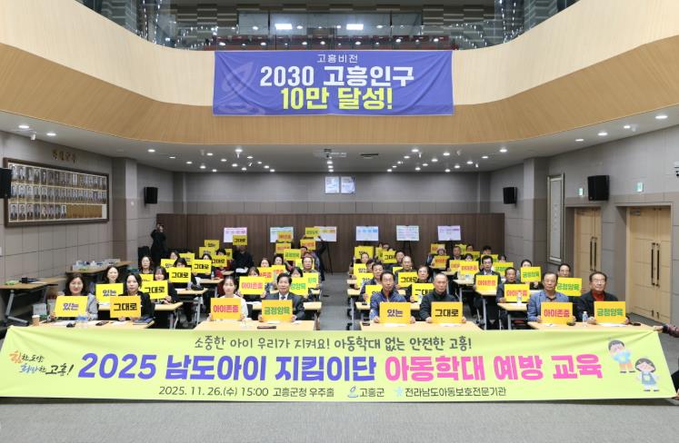 [무한뉴스=정민정 기자] 고흥군은 지난 26일 고흥군청 우주홀에서 이장과 아동업무 담당자를 대상으로 ‘2025년 남도아이 지킴이단 아동학대 예방교육’을 실시했다고 밝혔다.