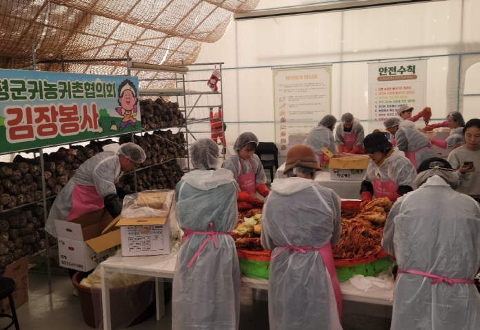 [무한뉴스=정민정 기자] 충북 증평군은 증평군귀농귀촌협의회(회장 신건석)가 19일 도안면 송정농원 교육장에서 ‘증평군귀농귀촌협의회 김장 나눔 봉사’활동을 진행했다고 밝혔다.
