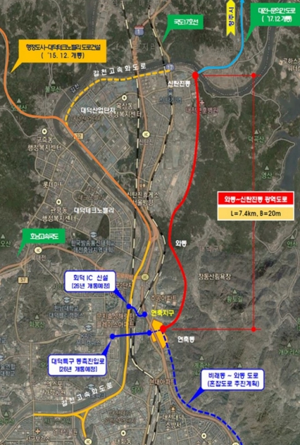 | ▲ 와동~신탄진동 도로개설 노선 |