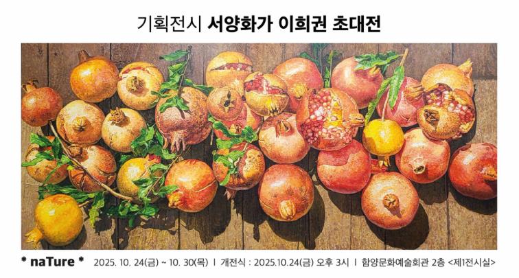 [무한뉴스=최진수 기자] 함양군은 오는 10월 24일부터 30일까지 함양문화예술회관 제1전시실에서 2025년 기획 전시로 서양화가 이희권 작가를 초대해 ‘naTure(네이처)’를 개최한다.