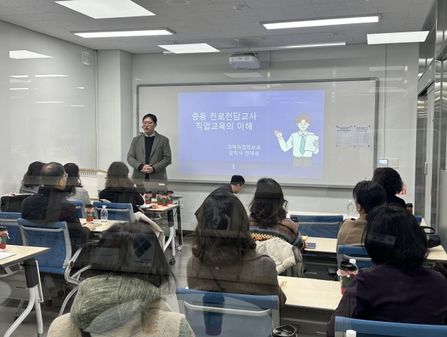 [무한뉴스=정민정 기자] 대전진로융합교육원은 12월 23일 대전산업정보고등학교 미래직업교육센터에서 중·고등학교 진로전담교사 18명을 대상으로 진행한‘2025학년도 중등 진로전담교사 직무성장 하반기 워크숍(6차)’을 마쳤다고 밝혔다.