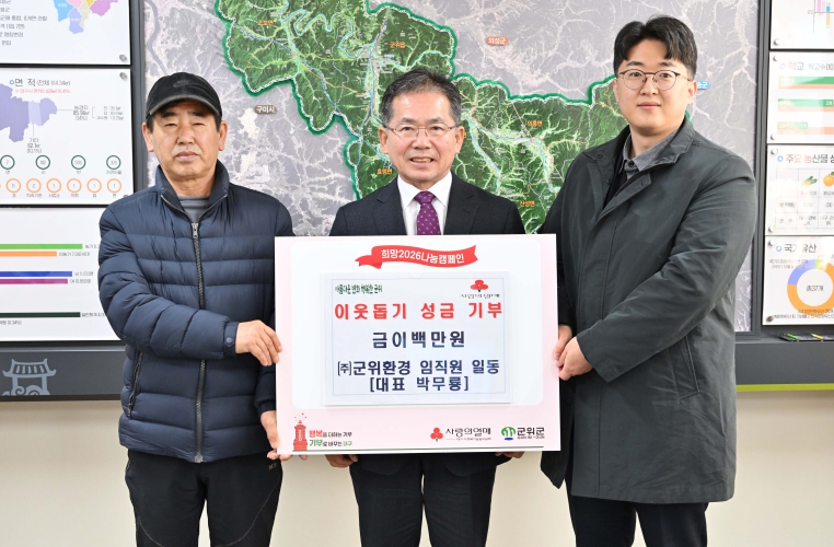 [무한뉴스=최진수 기자] 지난 15일, ㈜군위환경(대표 박무룡)에서 희망2026나눔캠페인 이웃돕기 성금 이백만원을 기부했다. 군위환경은 지난 나눔캠페인에도 이백만원을 기부하며, 매년 어려운 이웃들을 위해 나눔문화 확산에 동참해 오고 있다.