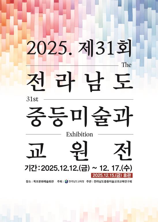 [무한뉴스=정승훈 기자] 전라남도교육청은 12일부터 17일까지 목포문화예술회관 1층 전시실에서 ‘2025. 제31회 전라남도중등미술과교원전’을 개최한다.