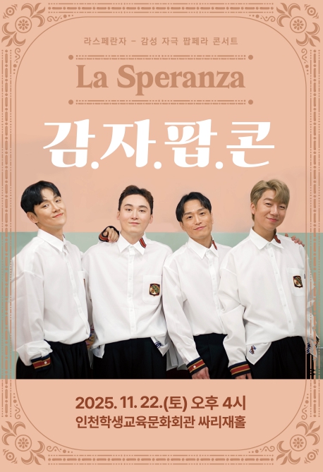[무한뉴스=정승훈 기자] 인천광역시교육청학생교육문화회관은 11월 22일 오후 4시, 대공연장 싸리재홀에서 대한민국 최초의 팝페라팀 라스페란자의 공연 ‘라스페란자 감자팝콘’을 개최한다.