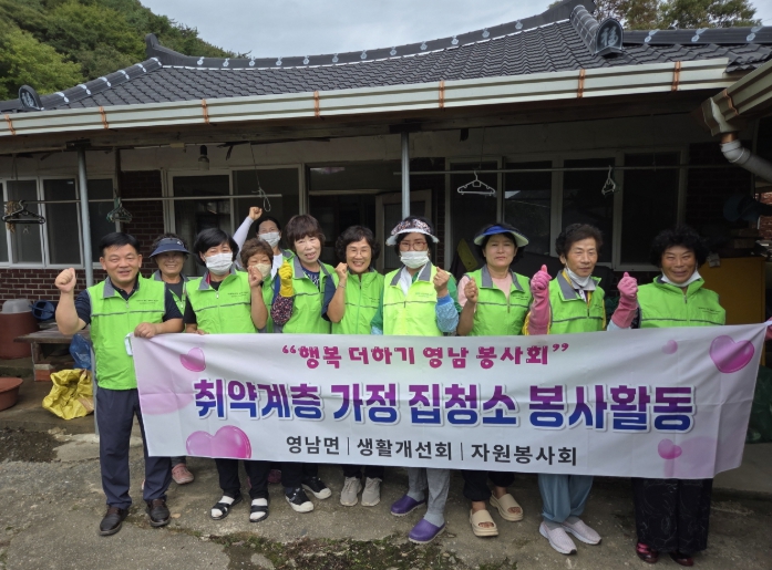 영남면 부녀회, 생활개선회, 새마을협의회 등으로 구성된 ‘행복더하기 영남봉사회’(일명 영남봉사회)는 영남면 신성마을 주민의 가정을 찾아 집 안 구석구석 청소를 진행했다.