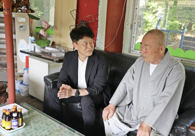 이날은 관내 사찰 종교시설인 용화사(조계종)와 무학사(태고종)에 방문하여 종교 지도자를 만나, 현장의 애로사항을 청취하고 환담하는 시간을 가졌다.