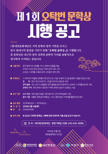 | ▲ 제천문화재단 제1회 오탁번 문학상 시행 공고 |
