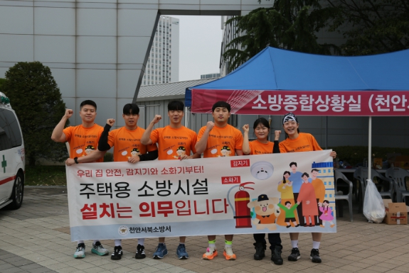 [무한뉴스=정민정 기자] 천안서북소방서는 26일 천안시민체육공원 일원에서 열린 ‘이봉주 마라톤대회’와 연계해 주택용 소방시설 설치 홍보활동을 전개했다.