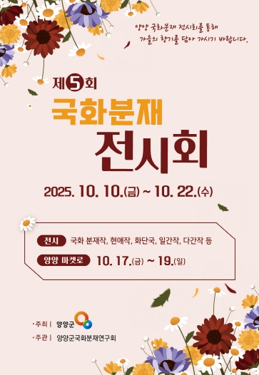 [무한뉴스=정민정 기자] 양양군 국화분재연구회(회장 윤종욱)는 오는 10일부터 22일까지 13일간 양양군농업기술센터에서 ’제5회 국화분재 전시회‘를 개최한다.