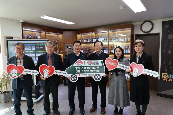 [무한뉴스=정민정 기자] 충북 영동군은 20일 군수실에서 ‘2025 사랑의 열매 차량지원사업’에 선정된 4개 기관을 대상으로 지원차량 전달식을 개최했다. 이번 전달식은 취약계층을 위한 복지서비스 접근성과 이동 편의성을 높이고, 지역 사회복지기관의 현장 활동을 적극 지원하기 위해 마련됐다.