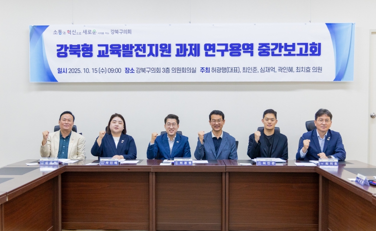 [무한뉴스=양현명 기자] 강북구의회 의원연구단체인 ‘강북형 교육발전지원 연구회’ (대표의원 허광행)는 지난 10월 15일 의회 3층 의원회의실에서 중간보고회를 열었다.
