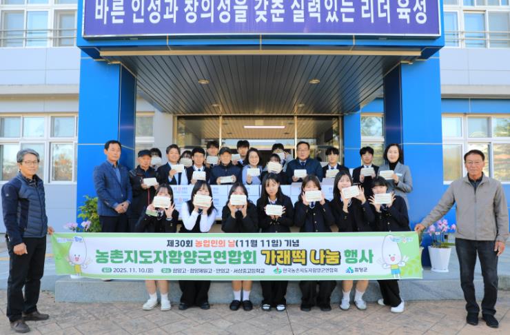 [무한뉴스=최진수 기자] 농촌지도자 함양군연합회는 다가오는 ‘농업인의 날(11월 11일)’을 앞두고 11월 10일 관내 4개 고등학교를 방문하여 ‘사랑의 가래떡 나눔’ 행사를 개최했다.