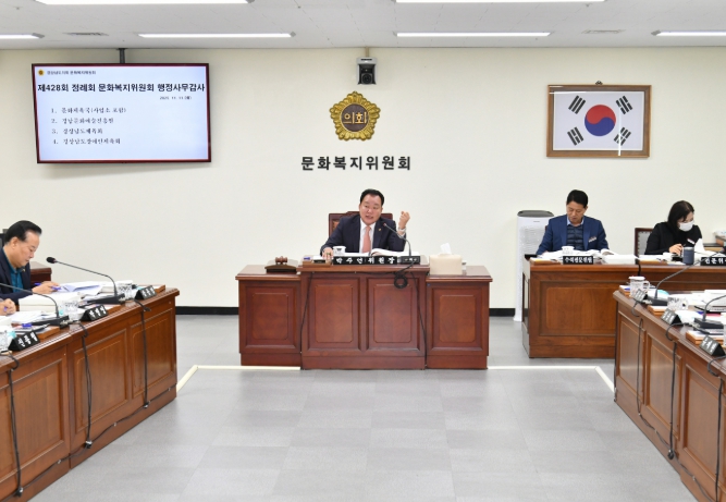 문화복지위원회는 12일에는 복지여성국 소관 부서 및 산하기관인 경남사회서비스원, 경남여성가족재단을 대상으로 행정사무감사를 이어갈 예정이다.