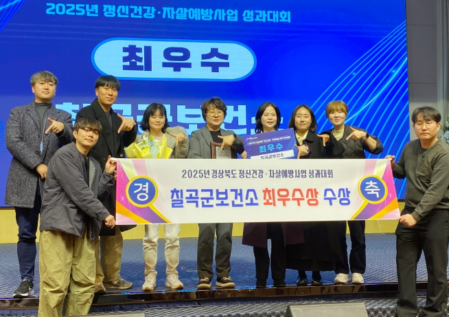 [무한뉴스=최진수 기자] 칠곡군은 지난 8일 구미 호텔금오산에서 열린 ‘2025년 경상북도 정신건강·자살예방사업 성과대회’에서 “최우수상”을 수상했다.