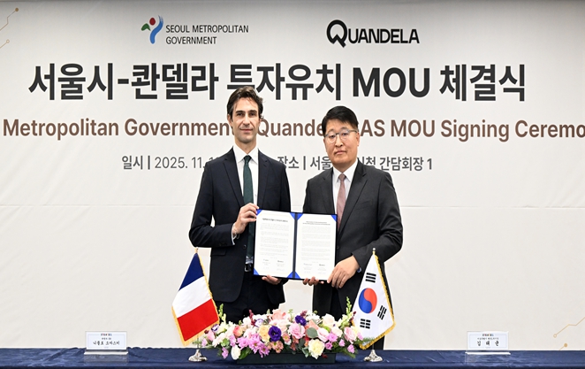 서울시는 11월 12일 오전 9시 시청 본관 간담회장에서 콴델라와 총 5,700만 달러(약 800억 원) 규모의 투자 등을 골자로 한 업무협약을 체결했다고 밝혔다.