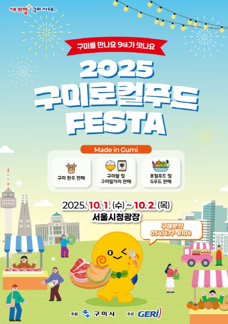 구미시는 오는 10월 1일부터 2일까지 서울광장에서 '2025 구미 로컬푸드 페스타'를 개최해 지역 농가와 기업이 직접 생산한 다양한 먹거리를 선보인다.