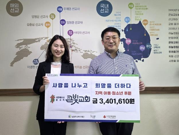 [무한뉴스=정승훈 기자] 남양주시는 지난 19일 남양주큰빛교회(담임목사 정현수)가 8월 한 달간 ‘사랑의 달’ 캠페인을 통해 모은 후원금 340만 1,610원을 동부희망케어센터에 전달했다고 23일 밝혔다.