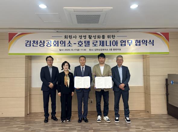 [무한뉴스=최진수 기자] 김천상공회의소는 지난 10월 17일 로제니아 호텔과 업무협약을 체결했다.