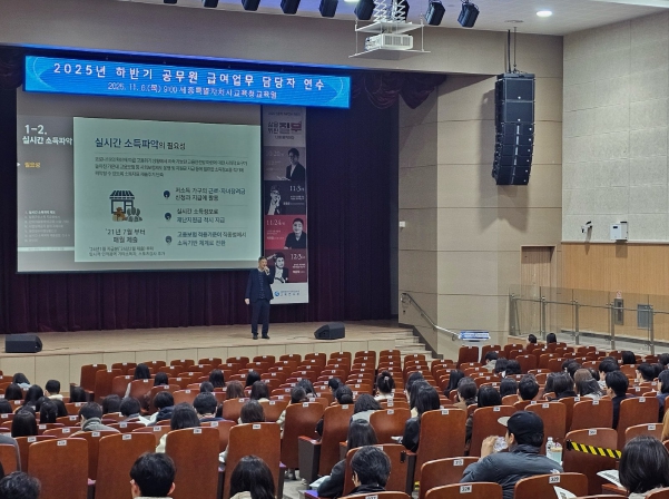 [무한뉴스=정승훈 기자] 세종특별자치시교육청은 11월 6일에 세종시교육청교육원 대강당에서 각급학교 및 직속기관의 업무담당자를 대상으로 ‘공무원 급여 연수’, ‘중증장애인생산품 우선구매 교육’, ‘학교장터(S2B) 계약 연수’를 실시했다.