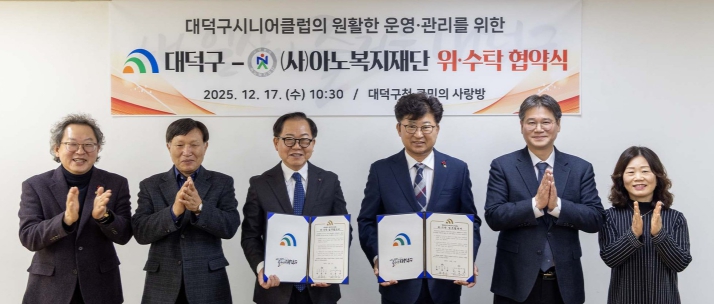 [무한뉴스=정민정 기자] 대전 대덕구는 17일 구청 구민의 사랑방에서 사단법인 아노복지재단과 대덕구 시니어클럽 위탁 운영 협약을 체결했다.
