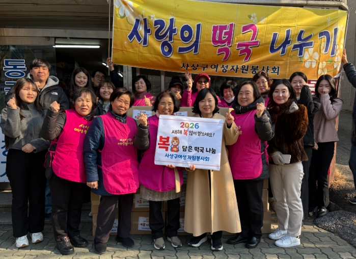 [무한뉴스=최진수 기자] 부산 사상구는 지난 23일 사상구여성자원봉사회가 ‘2026년 복(福) 담은 떡국 나눔’ 행사를 통해 관내 저소득가정 100세대에 떡국떡을 후원했다고 밝혔다.