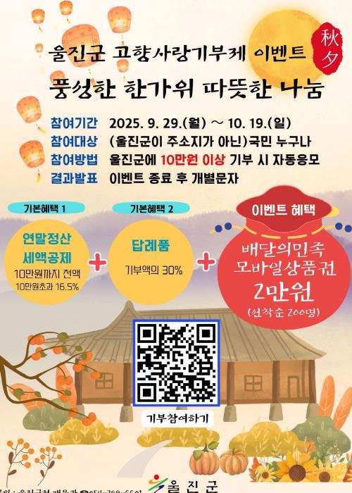 | ▲ 울진군, 고향사랑기부제 추석맞이 이벤트 개최 |
