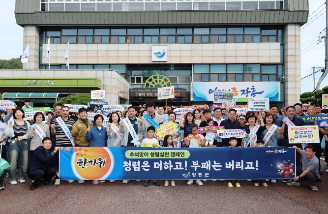 [무한뉴스=정민정 기자] 장흥군은 27일 추석 명절을 앞두고 정남진 장흥 토요시장 앞에서 ‘청렴 실천 캠페인’을 펼쳤다.