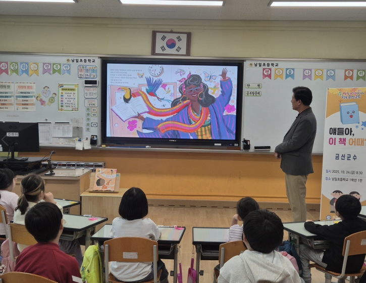 [무한뉴스=정민정 기자] 박범인 금산군수는 지난 24일 남일초를 방문해 학생들과 함께 그림책 읽는 시간을 가졌다.