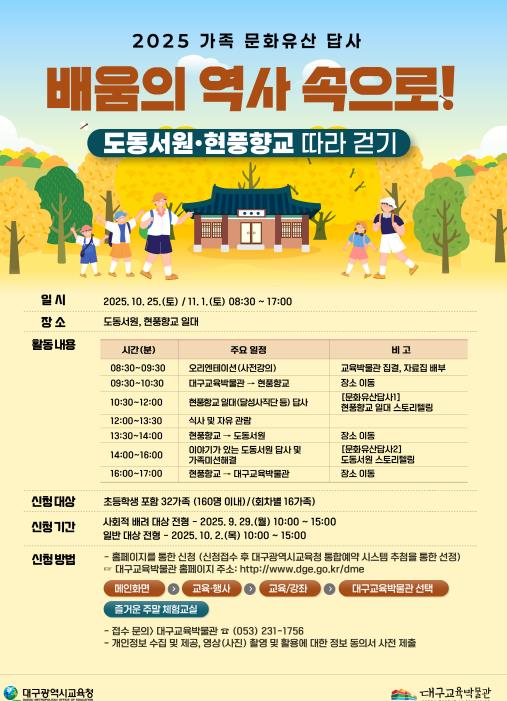대구교육박물관, 가족문화유산답사 운영, 9월 29일(월)부터 교육박물관 누리집 통해 참여 가족 모집