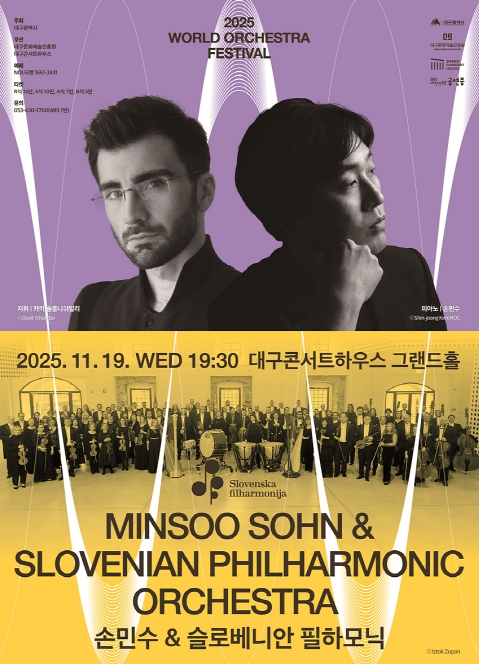 [무한뉴스=최진수 기자] 대구콘서트하우스는 월드오케스트라페스티벌의 일환으로 ‘손민수 · 슬로베니안 필하모닉’ 공연을 11월 19일 오후 7시 30분 그랜드홀에서 개최한다.