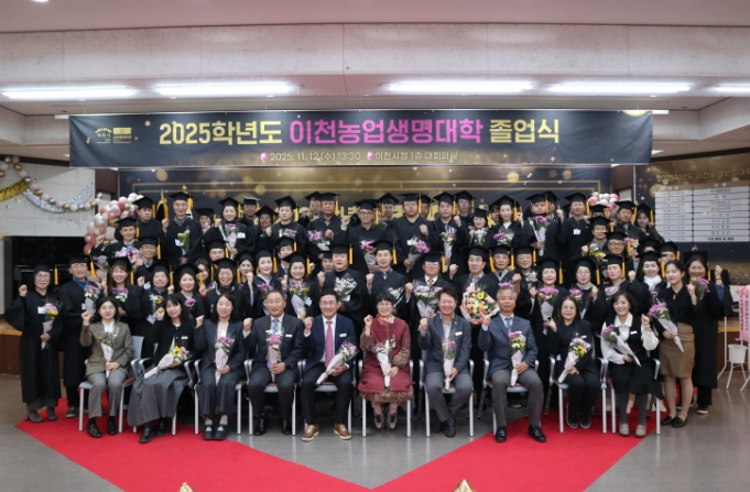 [무한뉴스=정충근 기자] 2025학년도 이천농업생명대학 졸업식이 11월 12일 이천시청 소통큰마당에서 성황리에 개최됐다. 이번 졸업식에는 지난 3월 입학 후 1년간 주 1회씩 진행된 28주간의 교육을 성실히 이수한 64명이 졸업의 영예를 안았다.