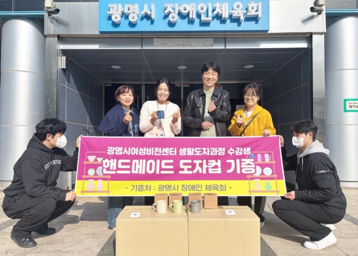 [무한뉴스=정승훈 기자] 광명시 여성비전센터는 지난 6일 제54기 정규과정 ‘생활도자공예품 제작과정’ 수강생과 지도강사가 함께 만든 머그컵 72개를 광명시 장애인체육회에 전달했다.