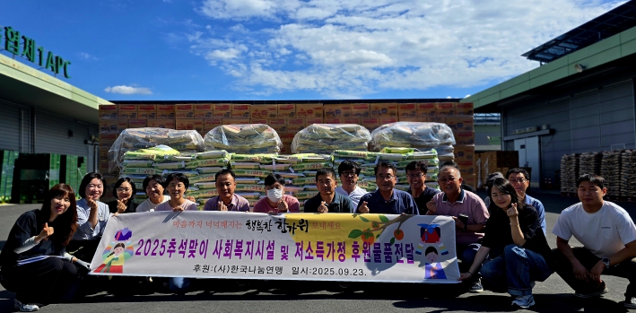 [무한뉴스=최진수 기자] (사)한국나눔연맹은 9월 23일 추석맞이 관내 사회복지시설 및 저소득가정에 쌀 1,000포, 라면 1,000박스, 과자 1,000박스(7천3백만원상당)를 전달했다.