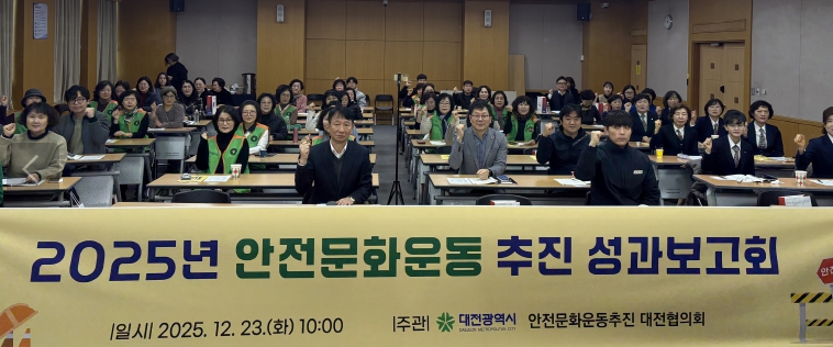 [무한뉴스=정민정 기자] 대전시는 23일 대전시청 세미나실에서 안전문화운동추진 대전협의회 소속 기관 및 단체 관계자 100여 명이 참석한 가운데 2025 안전문화운동 추진 성과보고회를 개최했다.
