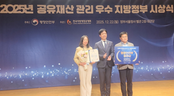 [무한뉴스=정민정 기자] 대전시는 행정안전부 주관‘2025년 공유재산 우수 지자체 시상식’에서 '우수사례 경진대회 부문'행정안전부 장관 기관표창을 수상했다.