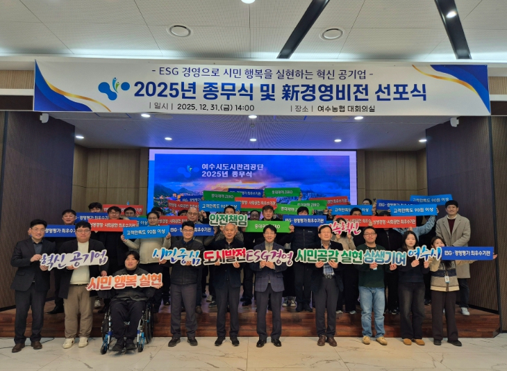 [무한뉴스=정민정 기자] 여수시도시관리공단은 31일 공단 대회의실에서 ‘新 경영비전 선포식’을 개최하고, 향후 5년간 공단이 나아갈 새로운 경영 철학과 조직 혁신 의지를 대내외에 공식적으로 밝혔다.