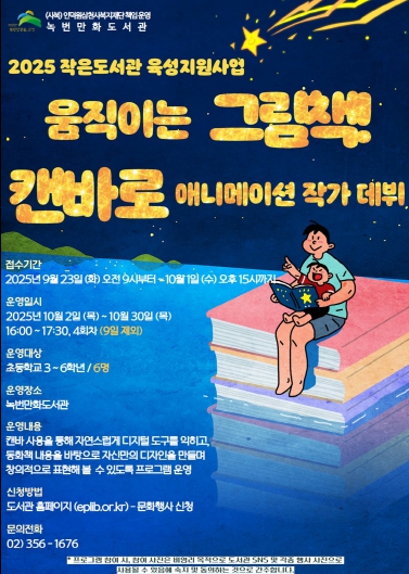 | ▲ 2025 작은도서관 육성지원사업 ‘움직이는 그림책! 캔바로 애니메이션 작가 데뷔’ 프로그램 안내 포스터 |
