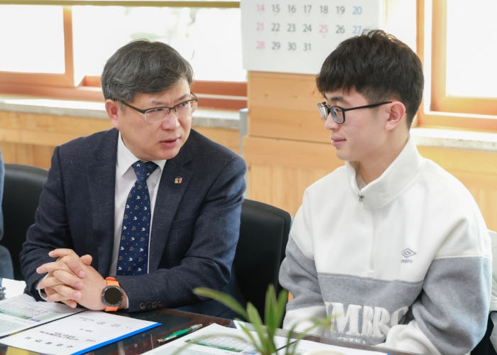 유정기 권한대행은 9일 전주한일고를 방문해 이하진 군 어깨를 두드리며 “일반계 고등학교 재학생 수능 만점이라는 쉽지 않은 일을 해냈다”고 축하했다.